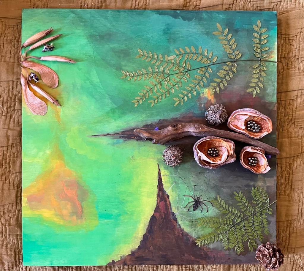 I was reminded by the presence of some pretty interesting artists in my recent mediumship class that creativity is often quite spiritual. It is being inspired to bring something into existence from the void. Sometimes it feels as if it already existed, as if it’s being guided from beyond instead of “created by us.” Inspired, this summer I started approaching my altar building as a form of art making and dropped into a creative groove I haven’t felt in a long time.